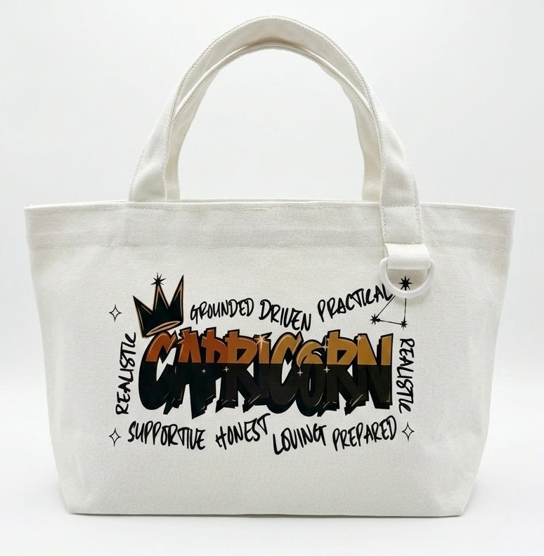 ZODIACS White Mini Cotton Reusable Tote Bag