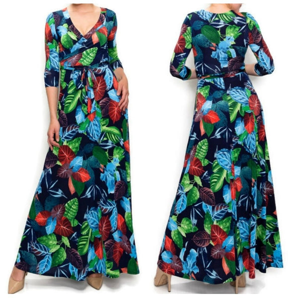 Autumn Ice maxi dress is a classic faux wrap with quality comfortable lightweight fabric; well constructed seams and stitching. Truly an all occasion maxi dress.